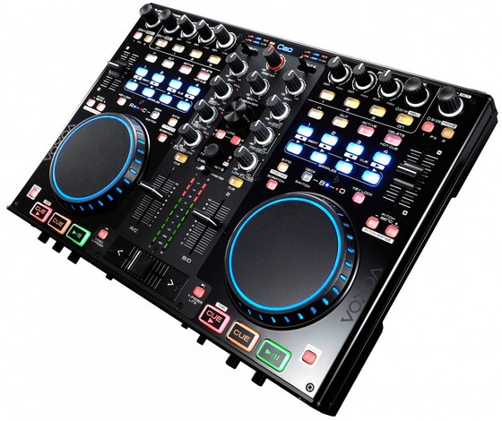 O Voxoa C60 é um controlador midi "tudo em um" possui, mixer de dois canais, placa de som, e controle para quatro decks.